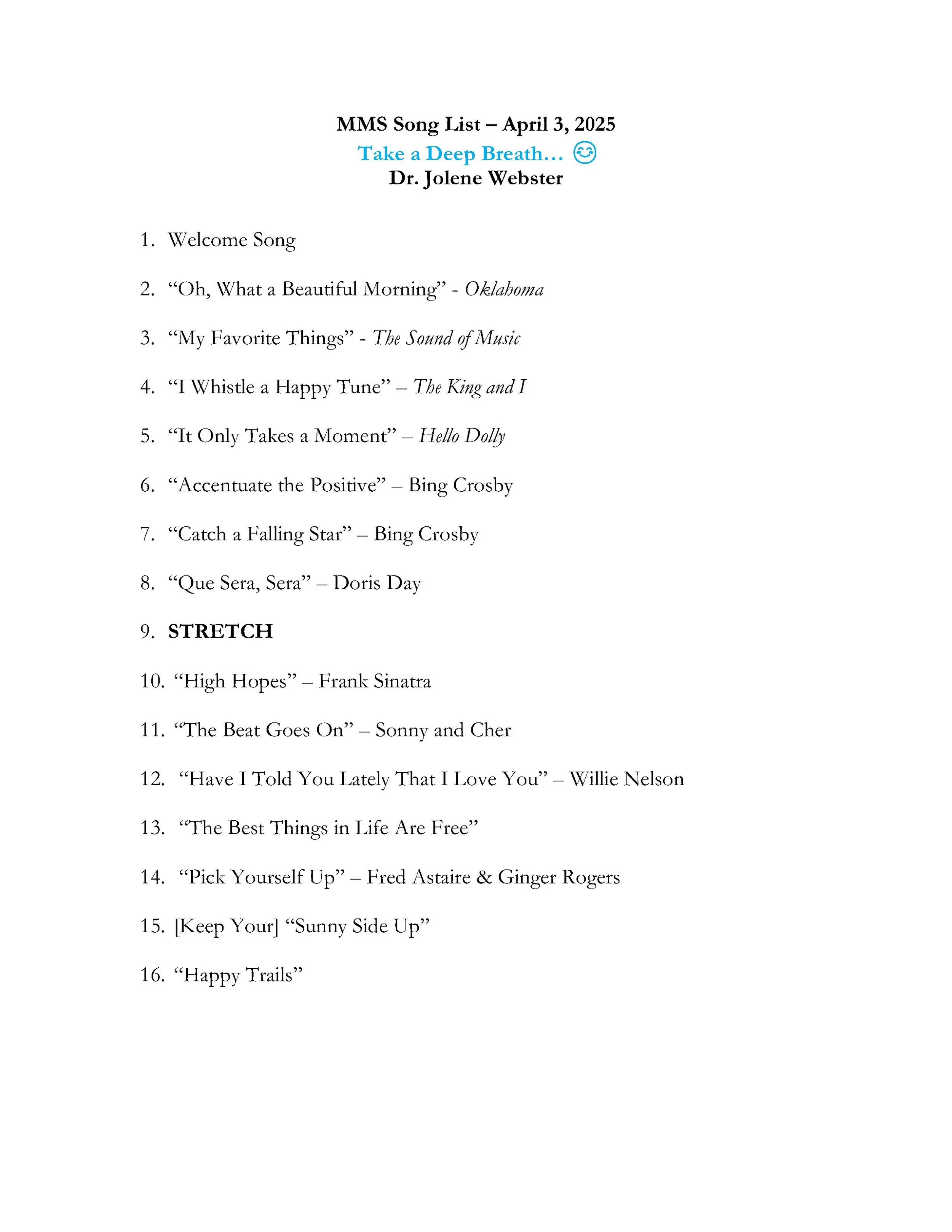 Song list: "Take a Deep Breath" 4/3/2025
