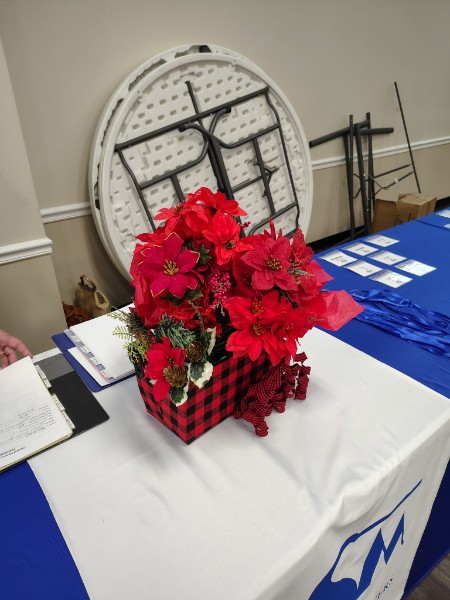 Reception table, with view of sign honoring the Lions' Club 7/3/2025